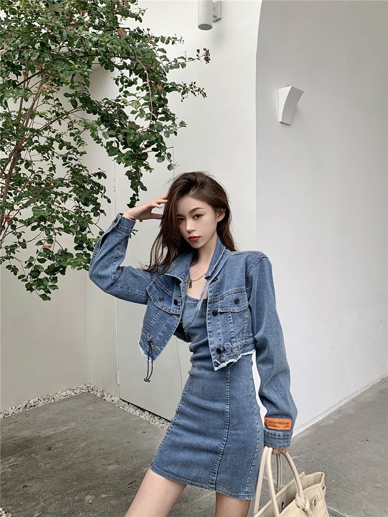 ショート丈のデニムジャケットとデニムワンピースのセットアップ♪
