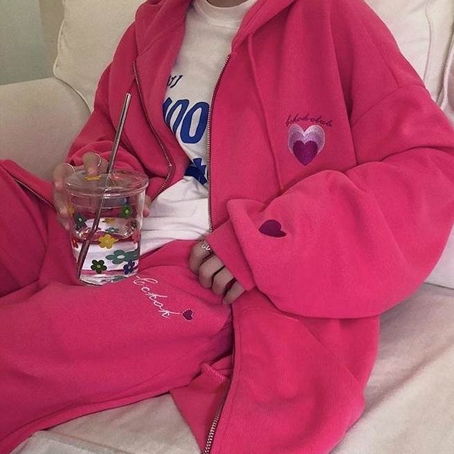 バストと腰のワンポイント刺繍がガーリーなジャージセットです。