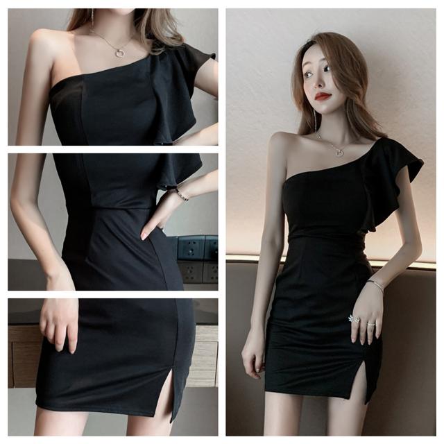 キャバ ドレス ミニ 超ミニ 黒 アシンメトリ