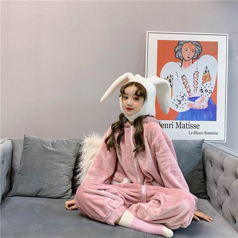 もこもこ ルームウェア パンツ レディース パジャマ 着ぐるみ風 フード付き オールインワン うさぎ ウサギ ピンク つなぎ 無地 面白い 個性的 かわいい やわらか インスタ映え キャラク ふわふわ