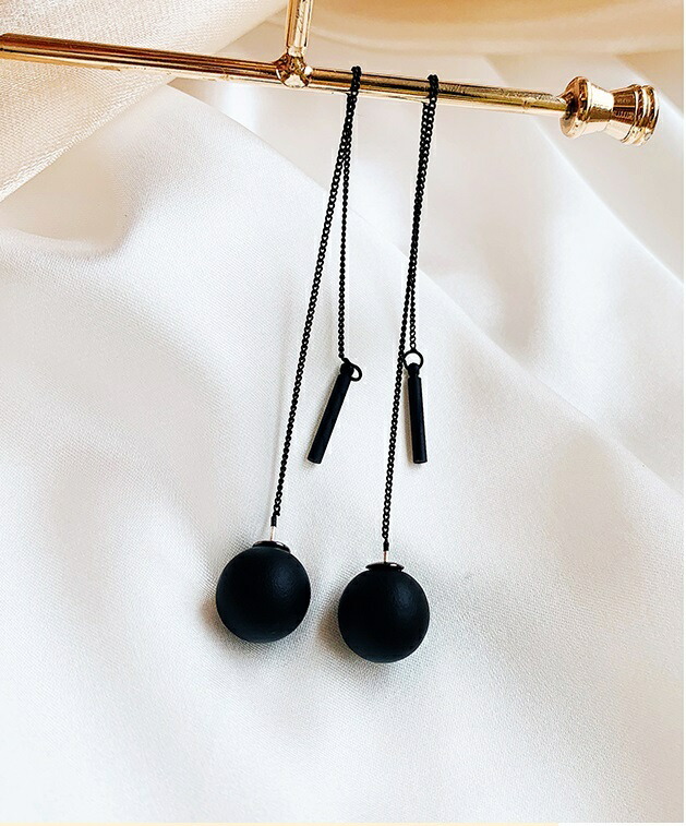 ピアス レディース 揺れる 黒 ロング チェーン ブラック ボール シンプル クール 大人 おしゃれ 個性的 結婚式 アクセサリー ジュエリー 耳飾り 高級感 大人カジュアル セ 上品
